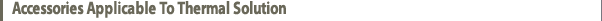 Standard and customized accessories are available in the application and enhancement of thermal performance. Interface Materials used between device and heatsink are Thermal Grease, Conductive Pad, Insulators, Double- Side Tape, Thermally Conductive Epoxy Bonds & etc. The accessories can be pre-applied to the thermal product before shipping.